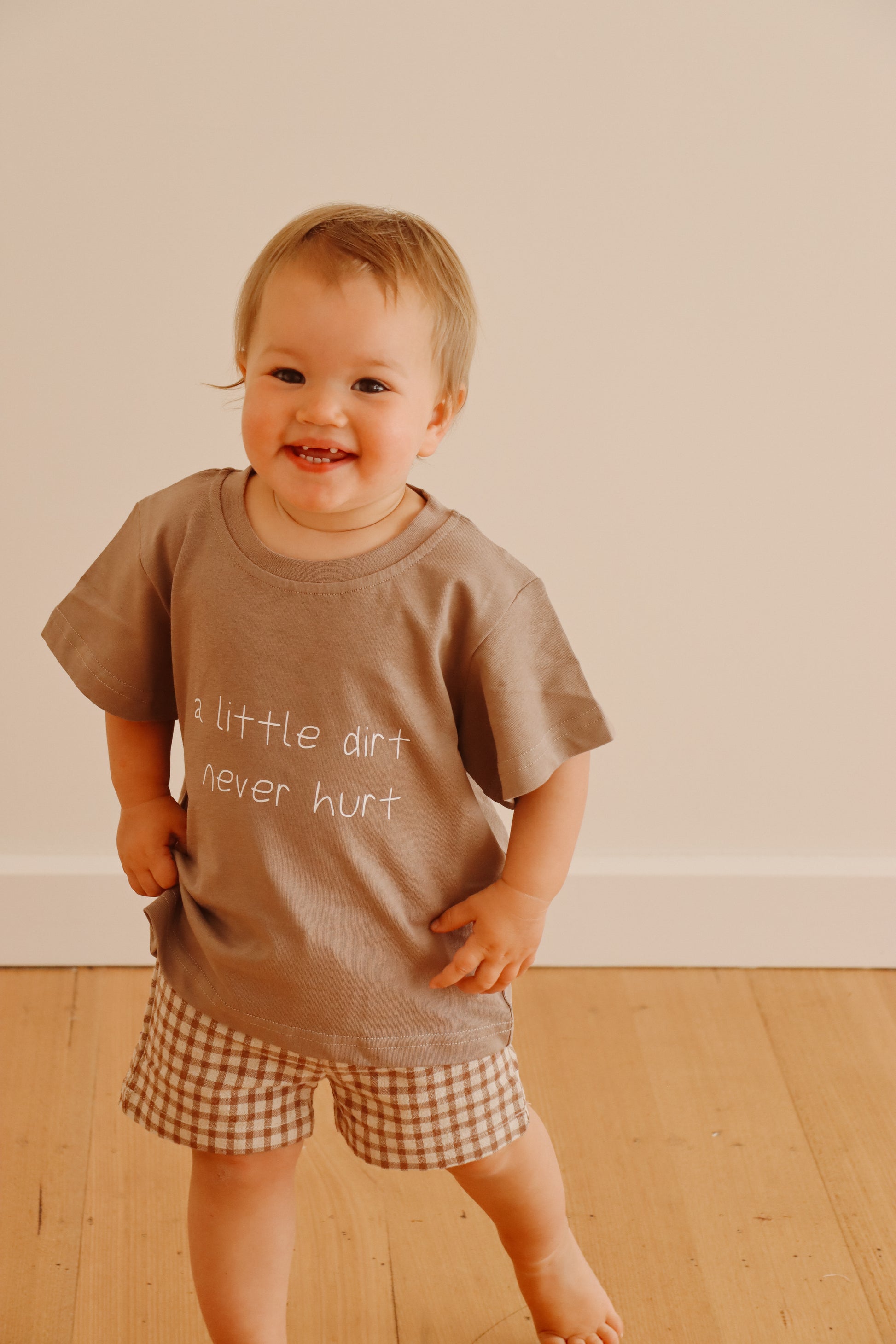 Let them dig, climb, and play freely. because a little dirt never hurt! This soft, durable cotton tee is made for wild adventures and muddy memories. Featuring a relaxed fit and bold graphic, it’s the perfect go to for kids.